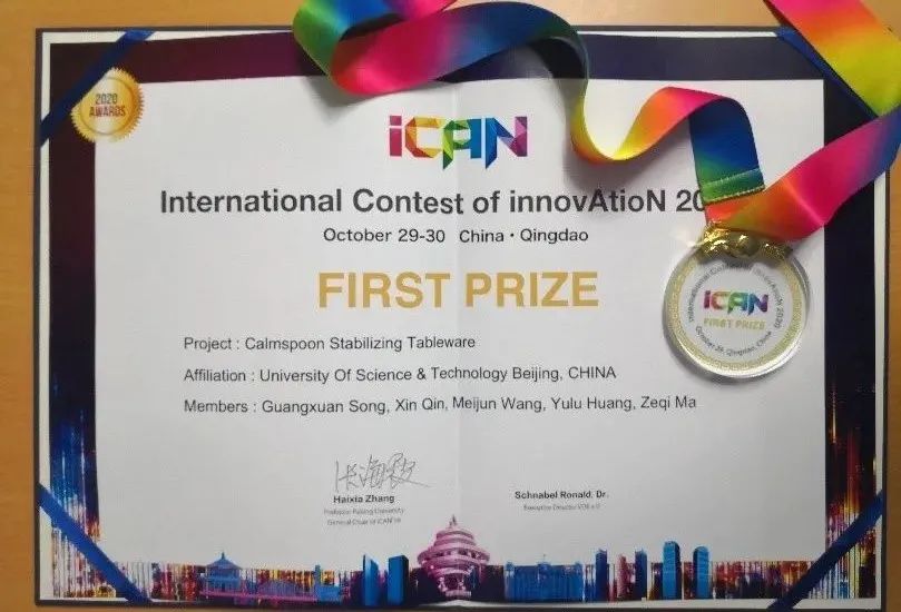 2020年iCAN大赛国际赛近日在青岛举行,今年通过多个国家承办遴选,共有来自中国、法国、日本等国家的15支代表队进入决赛,来自世界各国的评委线上打分与评议,我校“睿羹CalmSpoon”团队从国内600余所高校3000余支队伍中脱颖而出,作为全国五强代表中国队伍参加国际赛,荣获金奖!