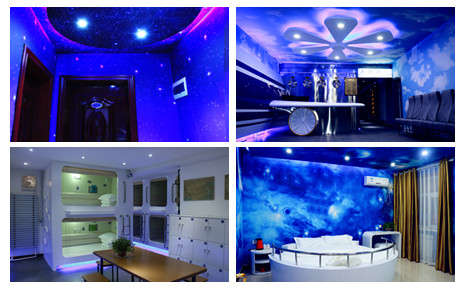 星空酒店团队首创性地把天文科普和酒店文化结合起来,在我国建成首家以星空为主题的科普酒店。酒店项目分成两期建设:第一期建立星空主题酒店,把星空带到旅客的房间里;第二期建设星空天顶房和球幕影厅,把旅客带到星空下,让人们真正有机会枕着星空入睡。