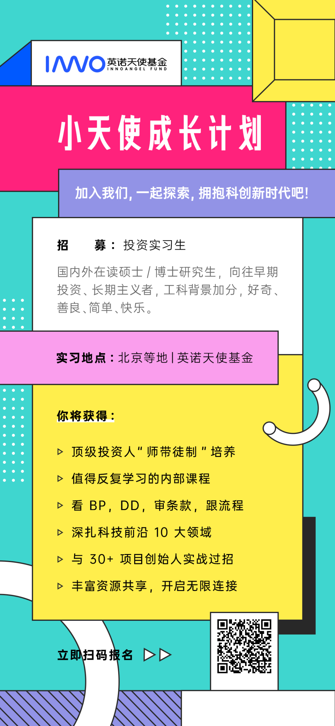今年,我们将继续招募硕士至博士生阶段的同学,全程由英诺天使基金的一线投资人“传帮带”,一起探索、拥抱科创新时代。