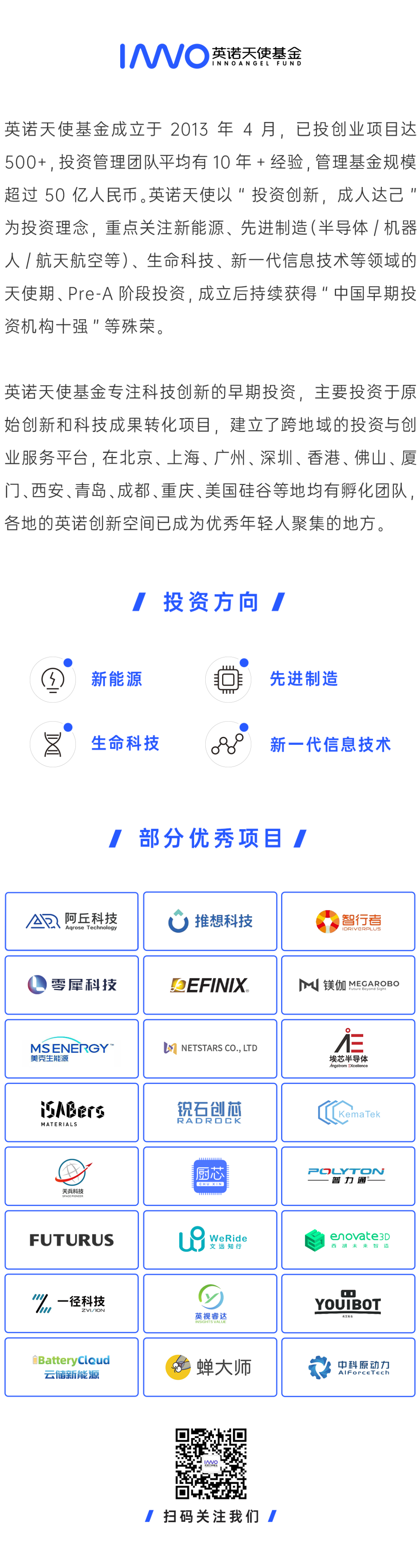 如果你也“好奇、善良、简单、快乐”,对未知和创新持续充满热情,真诚付出不执著于短期回报,热衷探寻事物的底层逻辑,以快乐轻松的心态坚持喜爱的事情,我在这里诚恳地期待你加入英诺的大家庭,一起为创业者开出第一张支票。