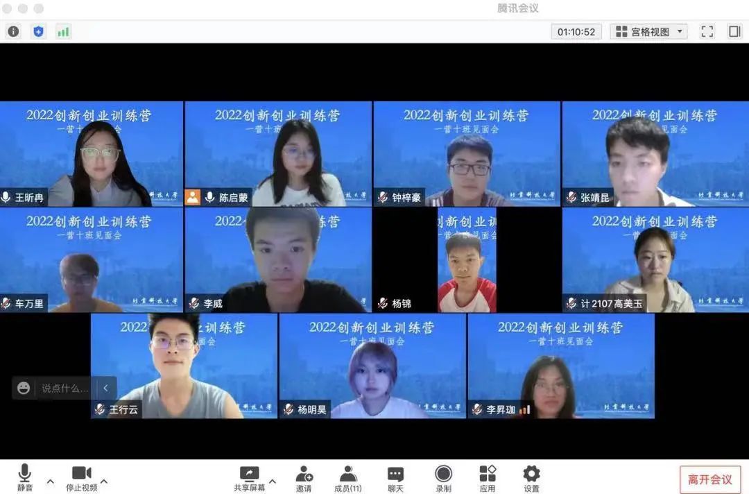 2022年7月22日上午10:00,微密猫 2022年夏季创业训练营结业典礼如期在线上通过腾讯会议举行。