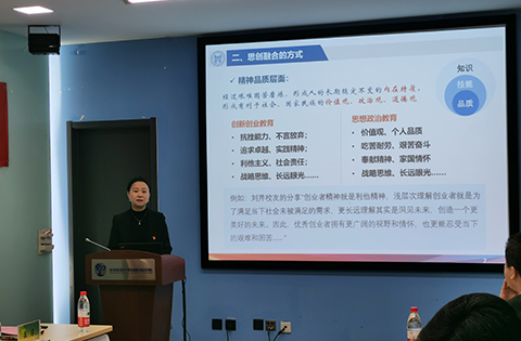 首先,王丽红以“基于‘思创融合’的大学生创新创业教育探索”为题进行报告。她指出,思政教育和创新教育其实是非常交融的,其教学目标有着共同点,分别是知识、技能、品质这三大层次。同时,她也谈到了“跟党学创业”这一思创融合范例的优越性与先进性,党曾被人民网、人民日报、澎湃网等官媒称为“史上最牛创业团队”,这一范例更具普适性,内容更丰富,有体系、有理论、有实践。