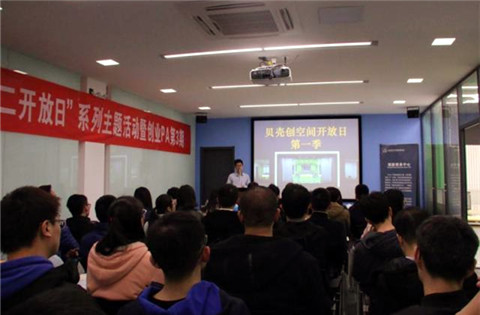 活动开始前,创新创业中心助理带领同学们参观了贝壳创空间,并就空间的建设由来、设计风格、功能布局以及内部设施做了一一介绍。