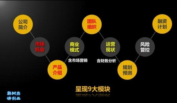 商业计划书需要论证三个价值——好问题、好方案、好团队;回答七个问题:七种分析法——问题分析、原因分析、解决方案分析、相关人员(系统)分析、相关时机分析、相关场景分析、投入产出分析;呈现9大模块——公司简介、市场机会、产品介绍、商业模式、团队组织、运营模式、规划预测、风险管控、融资计划。商业计划书的评价标准是定位精准、逻辑清晰、论证有力、形式专业、创新有效等内容。