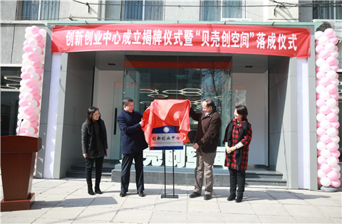 随着象征生命与希望的“贝壳创空间”绿色门灯的开启,武书记、张校长等为“创新创业中心”揭牌。