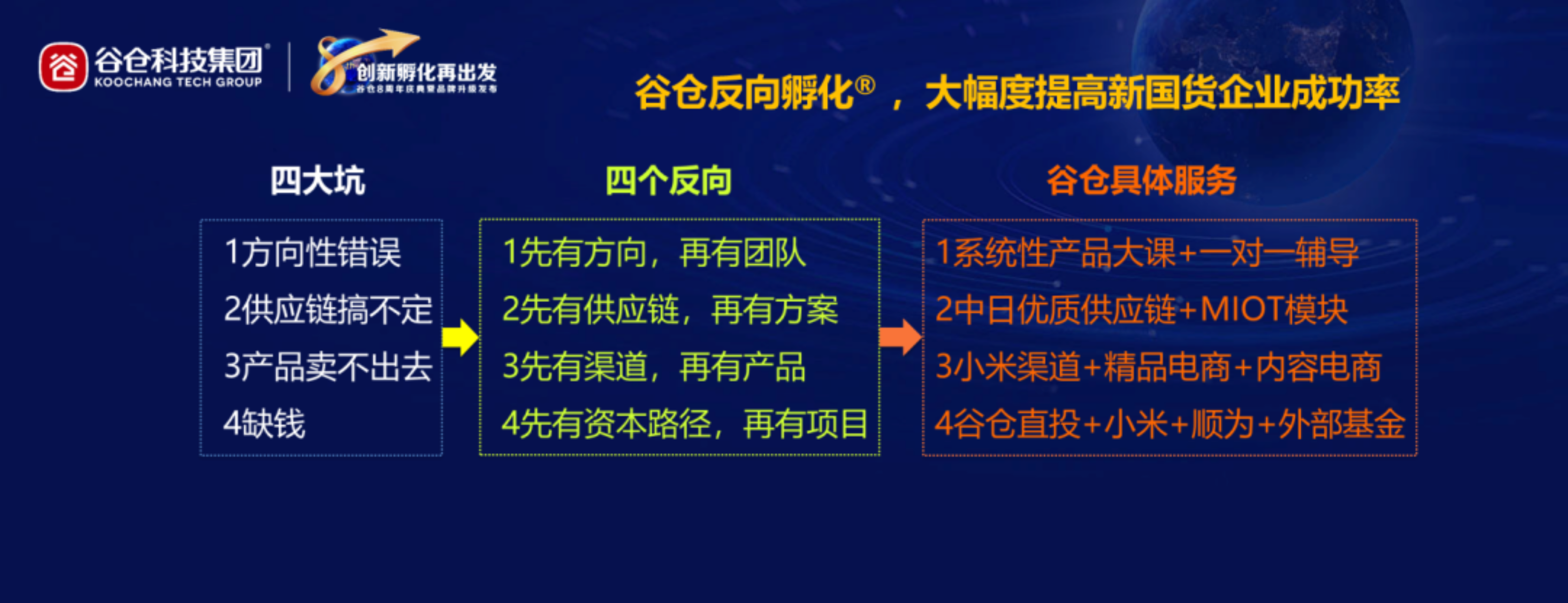 谷仓走过的8年中,洪博士带领谷仓从研究爆品方法论到亲手孵化出爆品,从单点孵化向集体式孵化迭代,在孵化企业的同时,还会挖掘优秀创业团队进行资本投资,与企业形成利益共同体,从学员的大成功里获取小收益。在孵化了数百个案例后,为了提高企业孵化的成功概率,谷仓还会专门去研究失败的企业,将它们失败的原因提炼出来,然后给出解决方案。