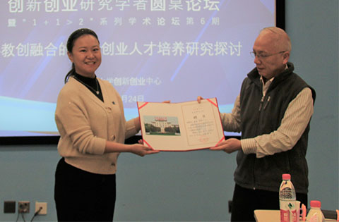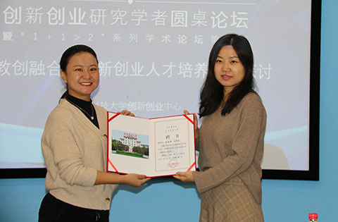 在主题报告开始前,创新创业中心副主任王丽红代表创新创业中心为出席的嘉宾颁发了“微密猫