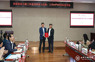 首先,学校党委副书记、副校长薛庆国进行了欢迎致辞。薛庆国简要介绍了微密猫 的创新创业育人工作情况,并聘任李泽湘教授担任学校创新创业导师。他表示,学校非常重视学生创新精神和创业能力的培养。多年来,学校机器人队在比赛中连续摘冠,获评“小平科技团队”。他希望,结合借鉴科创微密猫的创新创业教育模式,共同推进学校创新创业教育。